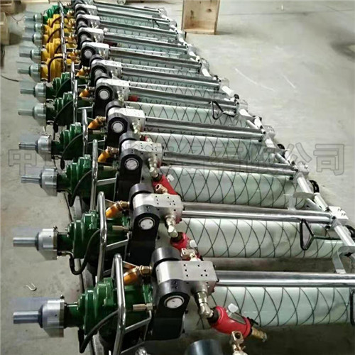 气动锚杆钻机适用于顶板硬度f≤10的煤、半煤巷岩及岩巷的锚护作业,集钻孔、搅拌、安装锚杆与一身。应用于煤矿的井下支护作业,也可适用于铁矿、隧道的施工和护坡等作业。缸筒采用玻璃钢制造,强度高、重量轻、耐腐蚀。旋转机构主要由齿轮马达、减速箱、超越轴承、输出轴、钻杆接头、通水套组立及消声器等组成。操纵机构主要由阀体、连接臂、手把组立及顶杆等组成。操纵手柄全部集中在手把组立上,操作简单、维修方便。
