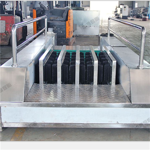 矿用洗靴机是井下人员升井后通过洗靴机时,洗靴机全智能控水、电、动力系统的运行,可以一次性洗净靴子底纹和靴面靴筒上的煤泥,保持靴子表面的清洁。矿用洗靴机是主要由洗靴系统、支撑部件、传动系统、电控系统、连接部件、人体行走扶手等构成,安置在井口或副井井口洗靴池处。升井人员走至洗靴机时,人体红外线传感器便会指令自动打开传动系统和喷淋系统,矿工行走或任意停留在刷洗靴机中间,就可自动把胶靴底、靴面、靴帮、靴尖、靴跟刷得干干净净,彻底解决了员工升井后还要用手刷靴,费时费力还刷不干净的问题,减轻了员工劳动强度,保持了井口卫生,减轻了粉尘污染,又能节约用水,是矿井标准化建设的可靠产品。